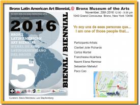 The 2016 edition of the Bronx Latin American Art Biennial is called, “I am one of those people that...”. The exhibitions of the Biennial will present artworks referring to personal aspects of the creation process.